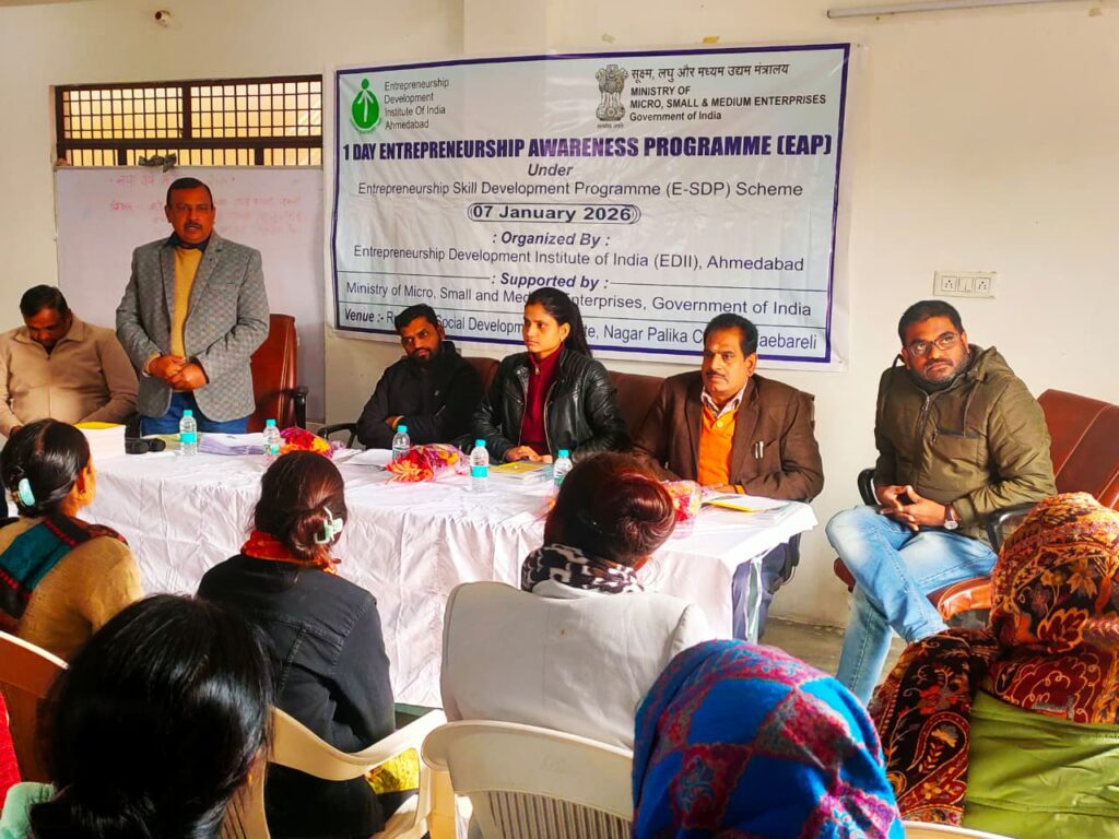 (राममिलन शर्मा) रायबरेली। सूक्ष्म, लघु एवम् मध्यम उद्यम मंत्रालय, भारत सरकार और भारतीय उद्यमिता विकास संस्थान (ई-डी-आई -आई), अहमदाबाद के द्वारा एक दिवसिय उद्यमिता जगरु कता कार्यक्रम का उद्घाटन दिनांक…